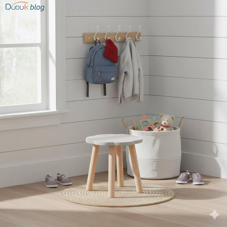 Además de ser funcional, el banco para niños baño de DUDUK aporta calidez y estilo al espacio.