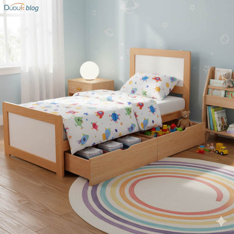En DUDUK, fabricamos camas con cajones de madera natural, inspiradas en la filosofía Montessori, donde cada mueble acompaña el desarrollo del niño promoviendo autonomía, armonía y sostenibilidad.