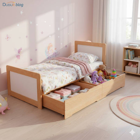 El diseño de una cama con cajones niños busca equilibrar belleza y funcionalidad.