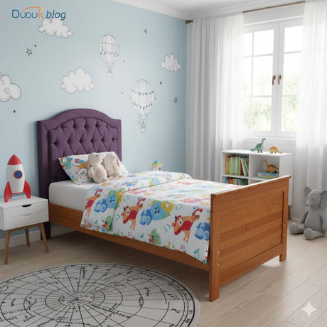 • Textiles modernos: cojines coloridos o colchas estampadas que aporten un toque juvenil.