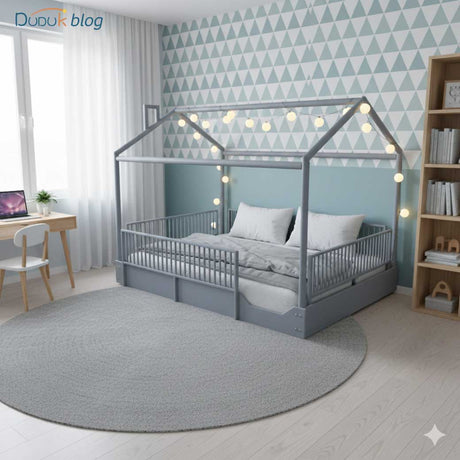 👉 Una cama Montessori gris no solo es un mueble funcional, también es un elemento decorativo que realza el espacio infantil.