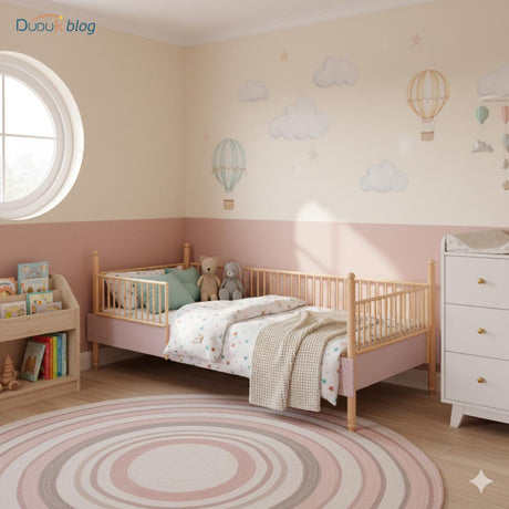 El material más común es la madera maciza o MDF ecológico, que garantiza estabilidad, calidez y una estética natural. Además, las pinturas y barnices suelen ser hipoalergénicos y libres de compuestos tóxicos, cuidando la salud del bebé.
