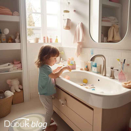 En cuanto a la profundidad del lavabo, se recomienda que tenga alrededor de 30 cm para evitar que los niños se inclinen demasiado hacia adelante y se caigan.