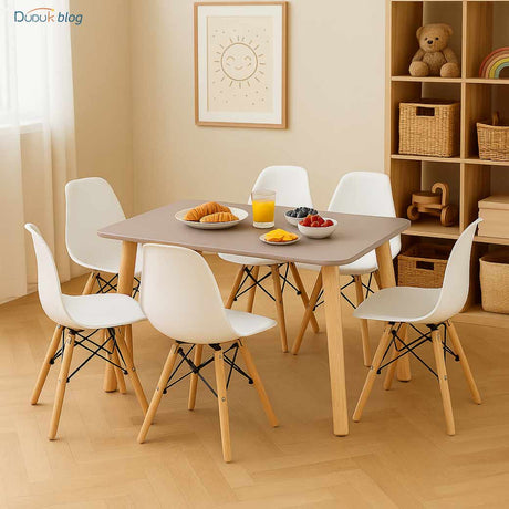 Una mesa con silla de niña no solo es práctica, también aporta estilo a cualquier espacio. Los diseños están disponibles en colores suaves como rosa, blanco, beige o tonos pastel, que se integran fácilmente en decoraciones modernas o Montessori.