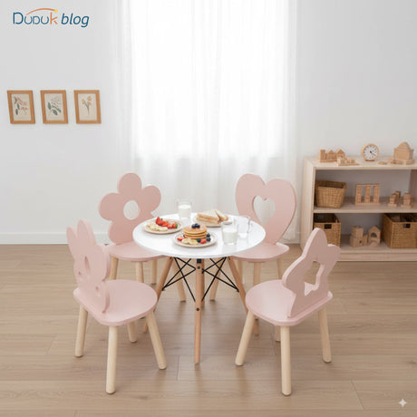 Diseños encantadores: mesas y sillas en colores suaves o formas divertidas que se integran al estilo infantil.