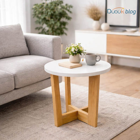Una mesa lateral circular es un mueble de apoyo, no una mesa principal.