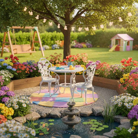 La mesa y silla exterior para niños crean un entorno donde aprender, jugar y soñar se vuelve natural.