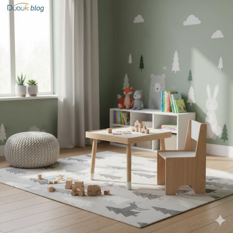 En el área de lectura o arte, agrega cojines suaves o una alfombra de yute.