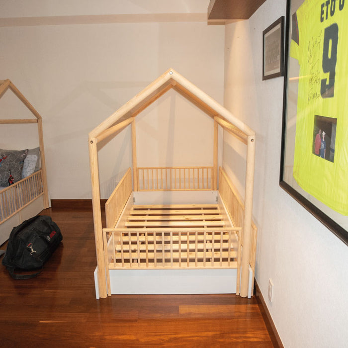 La cama casa montessori más moderna de México es Duduk. Ideal para la transición de la cuna a la cama. Ten por seguro que hará lucir increíble un dormitorio infantil. Las camas de madera con forma de casa tienen la virtud de hacer sentir a nuestros niños y niñas seguridad a la hora de dormir. Cuenta con madera natural redondeada para mayor seguridad.