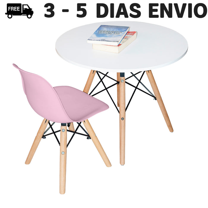 Comedor infantil Berlin, con silla disponible en tres colores. Ideal para que tu niño o niña juegue con su tablet, haga su tarea o dibuje. Recomendado para niños de 2 a 9 años, este conjunto crea un espacio moderno y acogedor en su habitación, fomentando la creatividad y el aprendizaje. |