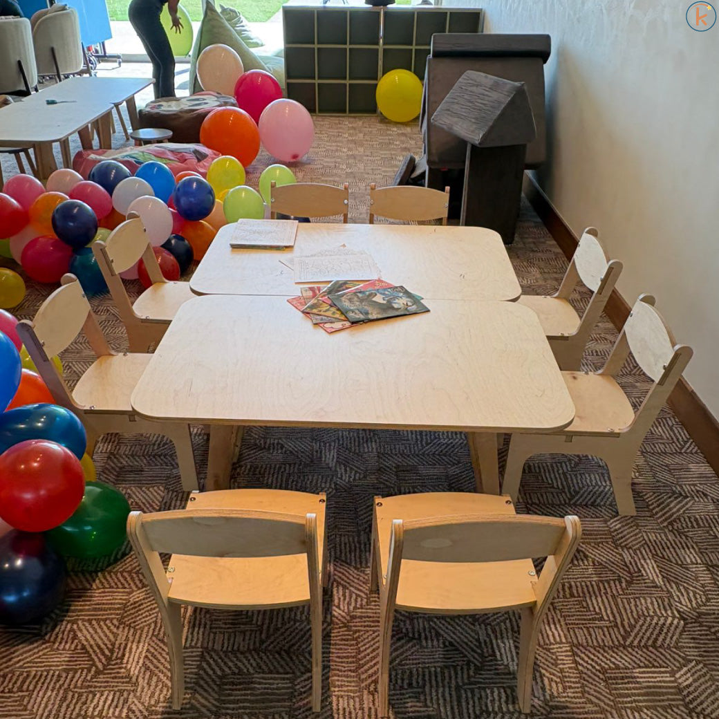 Mesa Rectangular (110cm largo) - 2 Sillas Abedul (sin barniz)