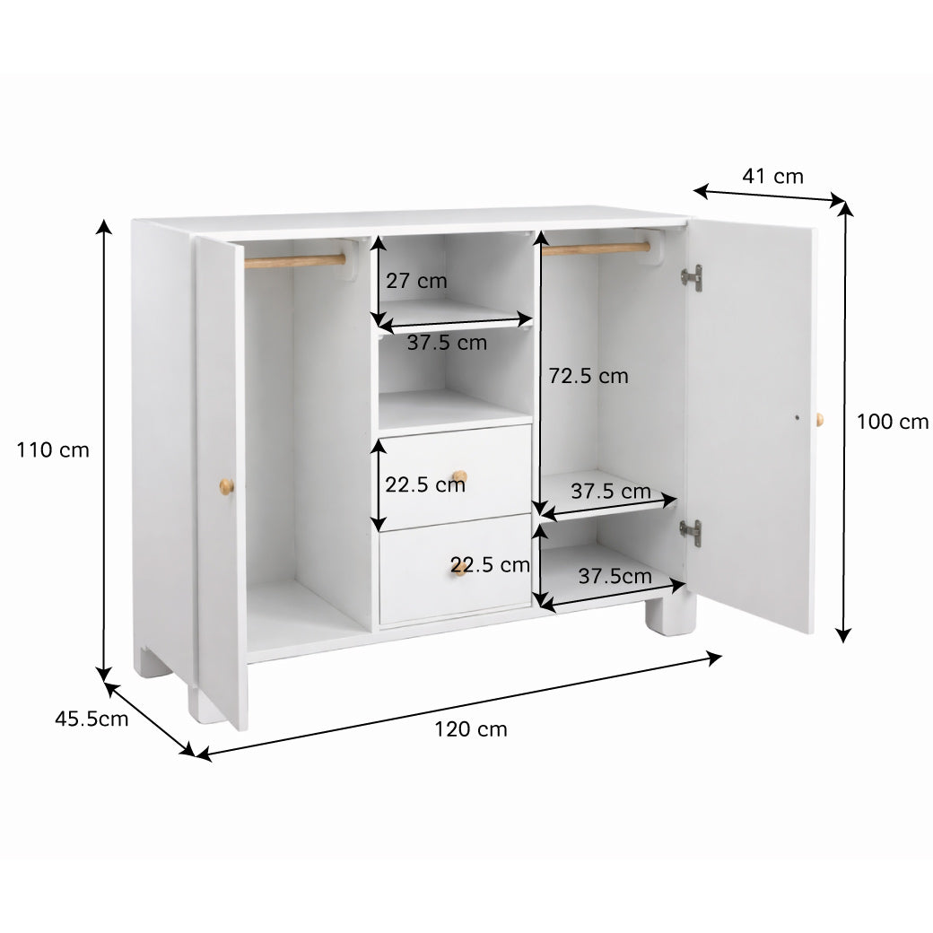 | Descripción: ropero para niños pequeños | El ropero doble es ideal para niños pequeños y niñas pequeñas. Cuenta con 2 cajones, 3 repisas y 2 percheros. Organiza un cuarto de niñas o niños con estilo. Elígelo en el color que mejor combine con su espacio. |