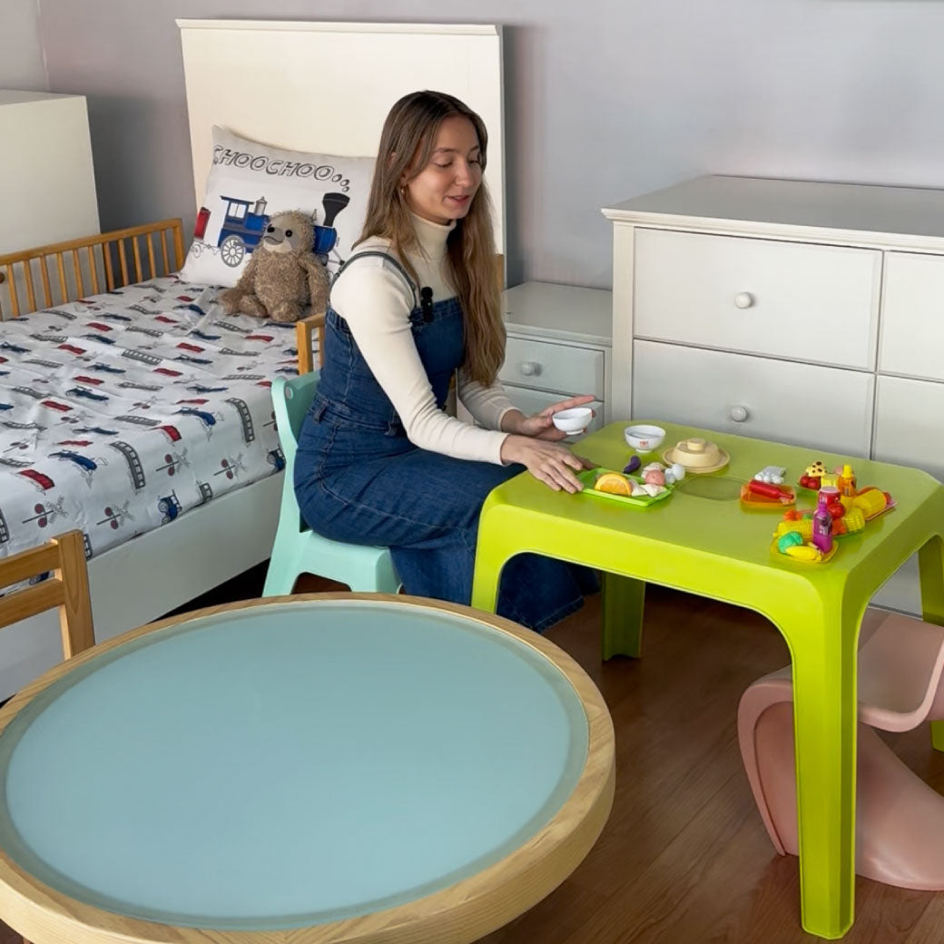 • Adapta a cualquier mesa infantil estándar (60cm altura)
